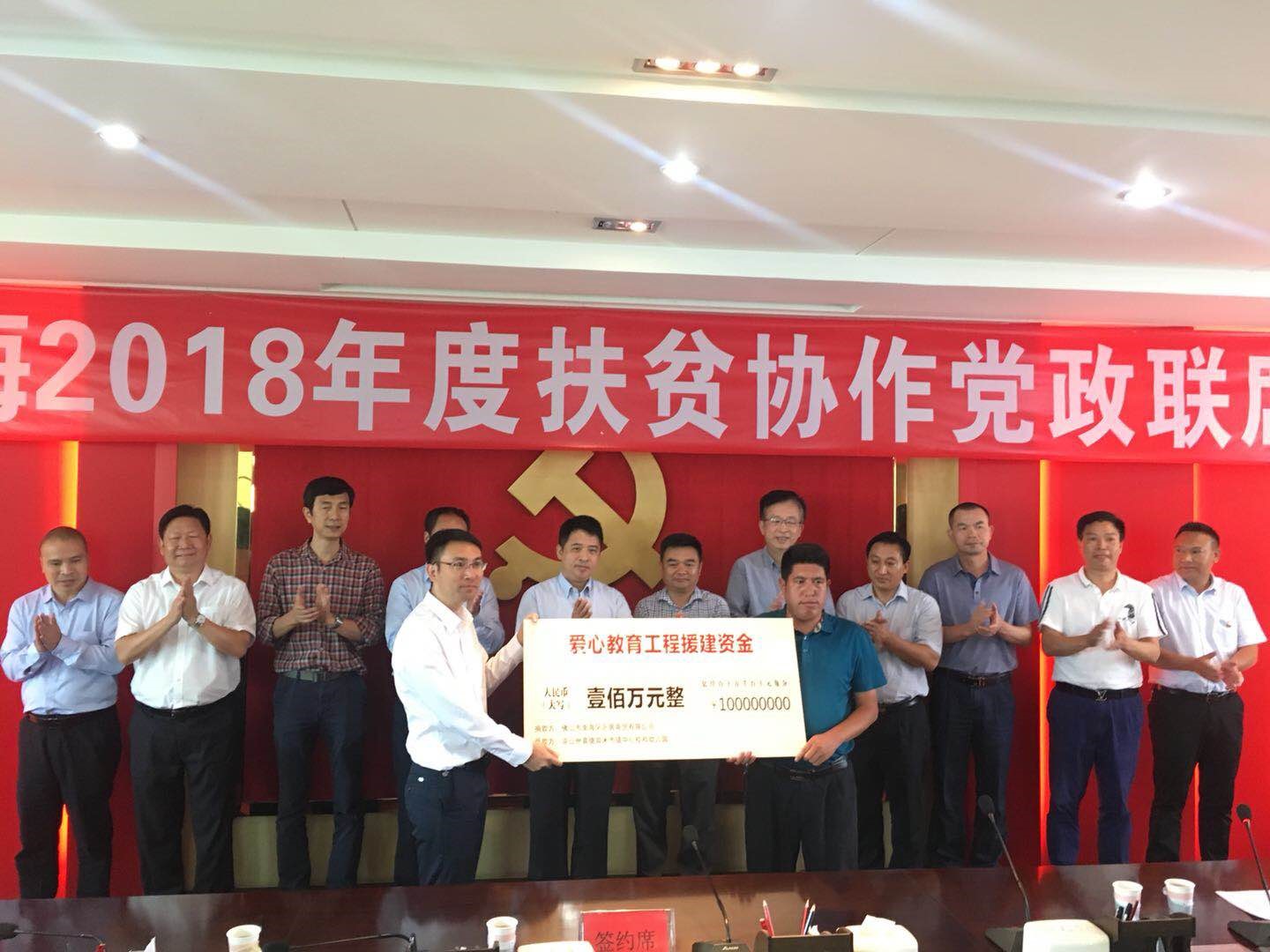 2018年7月17日,南海區(qū)黨政企代表團(tuán)一行18人,在市委常委、區(qū)委書(shū)記黃志豪的率領(lǐng)下,來(lái)到四川省涼山州,對(duì)南海對(duì)口幫扶的甘洛、越西、喜德三個(gè)深度貧困縣,開(kāi)始為期四天的扶貧協(xié)作調(diào)研。18日上午,“喜德-南海2018年度扶貧協(xié)作黨政聯(lián)席會(huì)議”召開(kāi)舉行。會(huì)議上,廣東樂(lè)居商貿(mào)集團(tuán)向涼山州喜德縣米市鎮(zhèn)捐贈(zèng)愛(ài)心教育工程援建資金100萬(wàn)元,助力精準(zhǔn)教育扶貧。