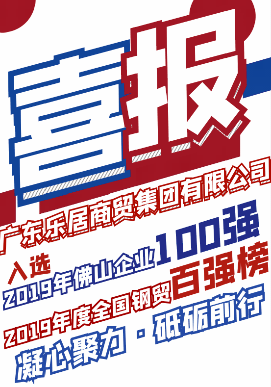 好事成雙,捷報(bào)頻傳:12月14日-15日,一年一度的“全國(guó)鋼鐵貿(mào)易百?gòu)?qiáng)”評(píng)選活動(dòng)結(jié)果出爐,廣東樂(lè)居商貿(mào)集團(tuán)有限公司入選,綜合排名全國(guó)23。