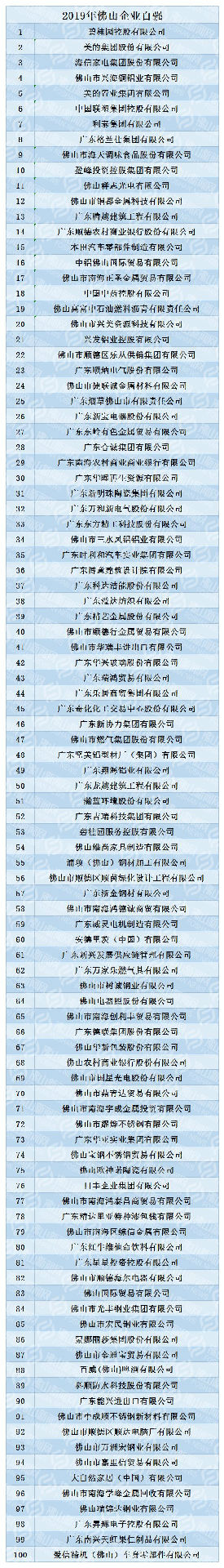 【以下是佛山企業(yè)100強(qiáng)榜單】