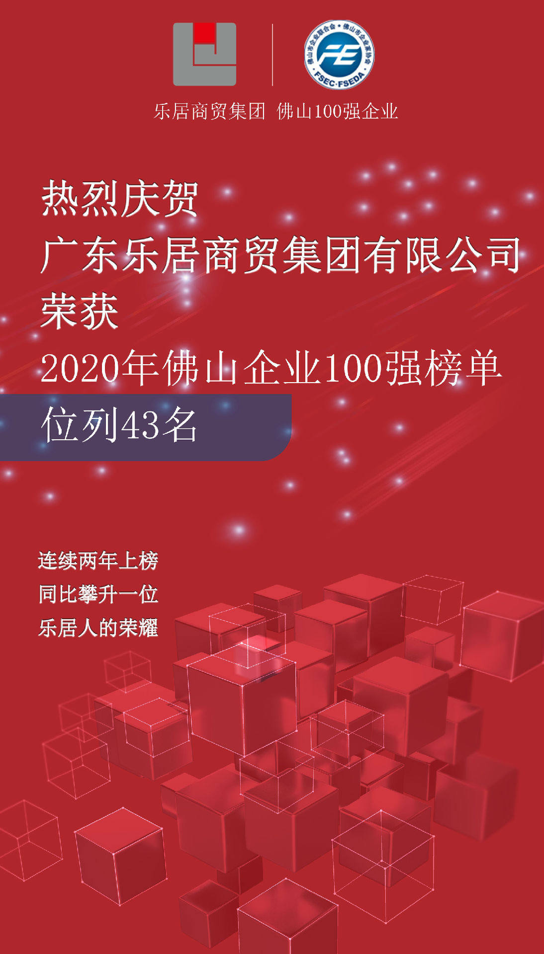 2021-03-08光榮榜!廣東樂居商貿集團有限公司連續(xù)入選“佛山企業(yè)100強”