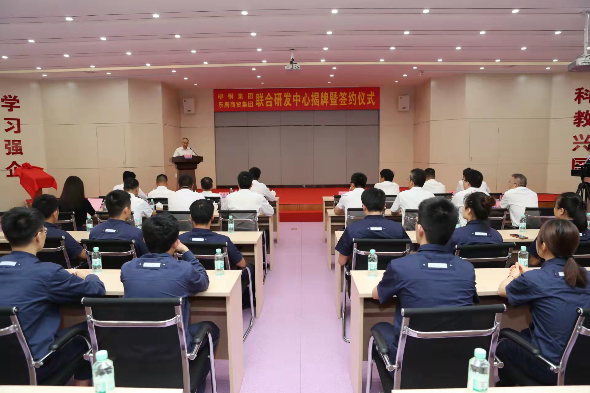 以技術創新,促服務升級。6月8日,樂居商貿集團與柳鋼集團聯合研發中心(以下簡稱“聯合研發中心”)簽約暨揭牌儀式在柳鋼集團技術中心舉行。柳鋼集團董事、副總經理施沛潤與樂居商貿集團總經理馮敏達分別致辭并見證簽約,共同為聯合研發中心揭牌。