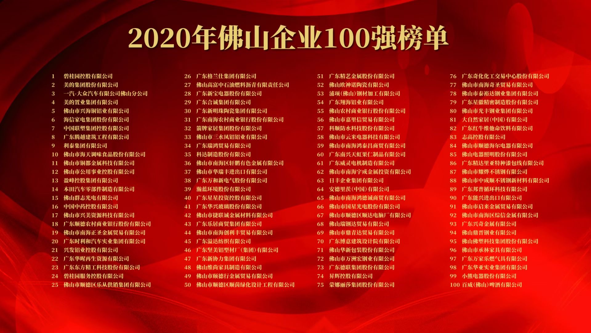 光榮榜!廣東樂居商貿(mào)集團(tuán)有限公司連續(xù)入選“佛山企業(yè)100強(qiáng)”