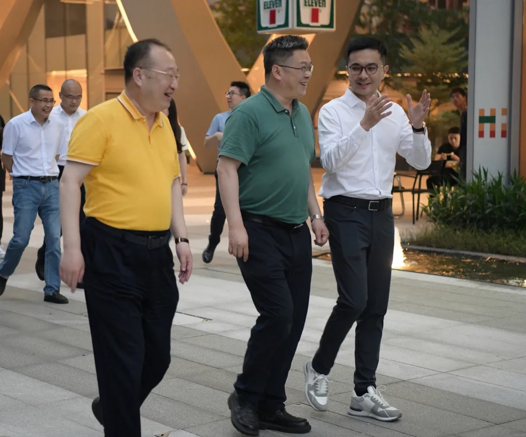 After a cordial business exchange, the two parties toured the Leju U Center together. We also invited friendly partners, including Li Yudan, Chairman of Nanhai Xiangnan Company, and He Defeng, President of Xiongfeng Special Steel Company, to join the tour.